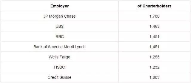 数据来源于:CFA Institute。The employer names are self-reported by members and thus subject to misspellings and other discrepancies. To the extent possible, companies were rolled up to the parent company level for data quality purposes.