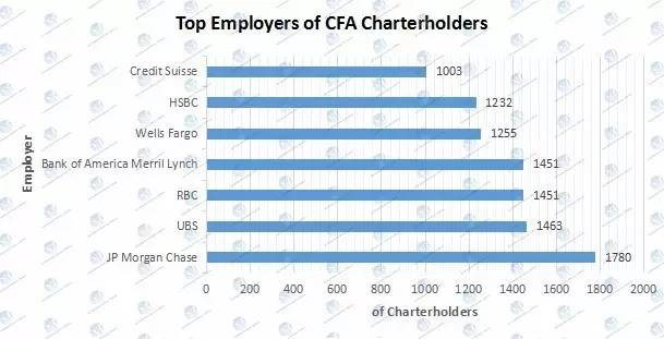 JPMorgan是CFA持证人的最大雇主,从以下图表中即可看出对比——