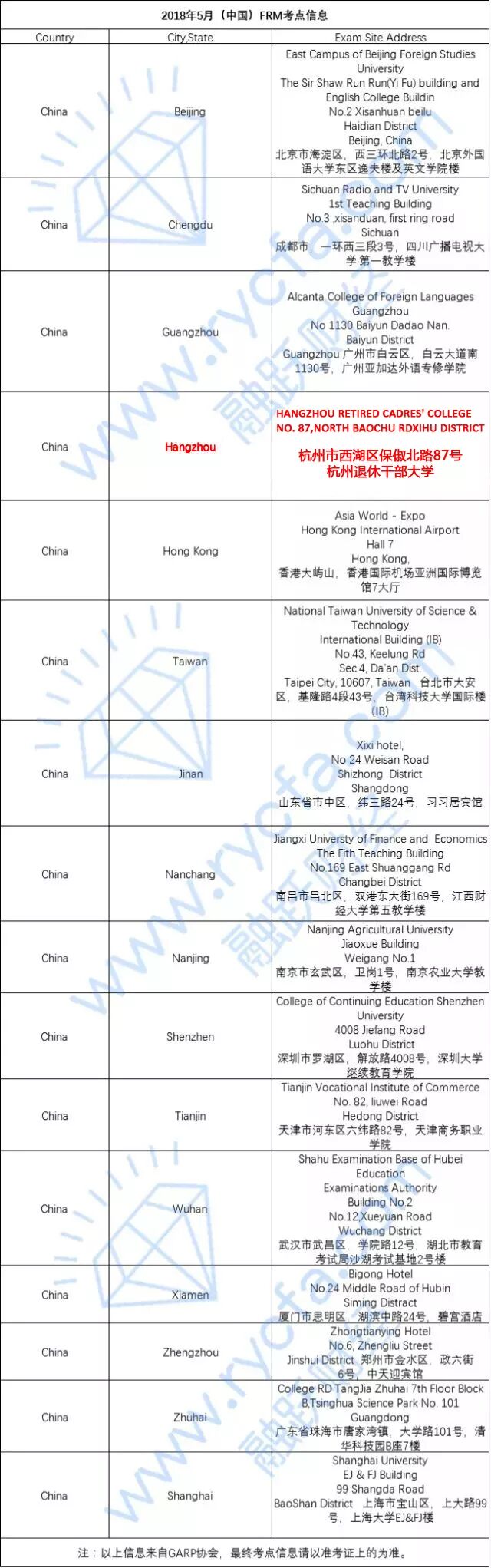 文章资讯 > 科普篇 > 文章:杭州考点有变!2018年5月FRM准考证打印和考点变更!